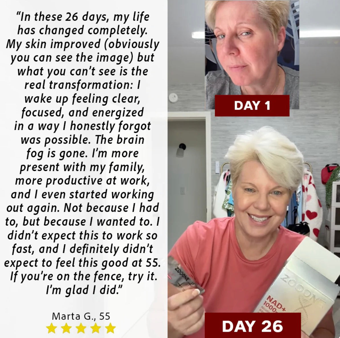 Unlock your potential with Zooone NR1000, a premium NAD+ drink mix designed for skin aging support, enhanced energy, and improved focus. Made from 100% natural ingredients, this delicious berry-flavored supplement revitalizes your body and mind, helping you feel vibrant every day. With over 28,000 satisfied customers, each pack delivers a powerful blend of vitamins and minerals tailored to boost your stamina and overall wellness. Enjoy the convenience of a 30-day money-back guarantee, ensuring your satisfaction. Choose Zooone NR1000 to elevate your health and sparkle with confidence!